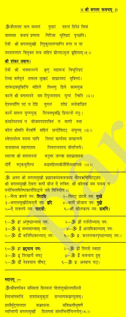 श्री बगलामुखी कवच । ।
